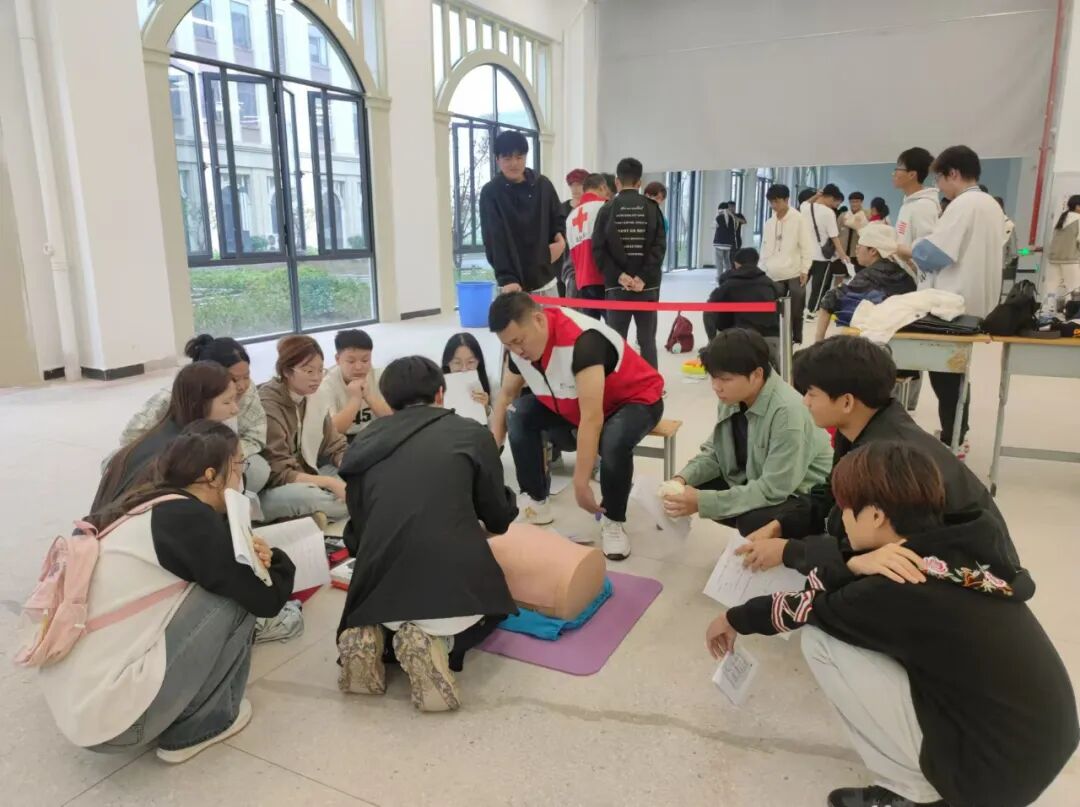 “创伤包扎、心肺复苏、AED操作……”14日下午,在湖北工程职业学院学生活动中心,近200名大一新生正在进行红十字初级救护员实操训练、考核。