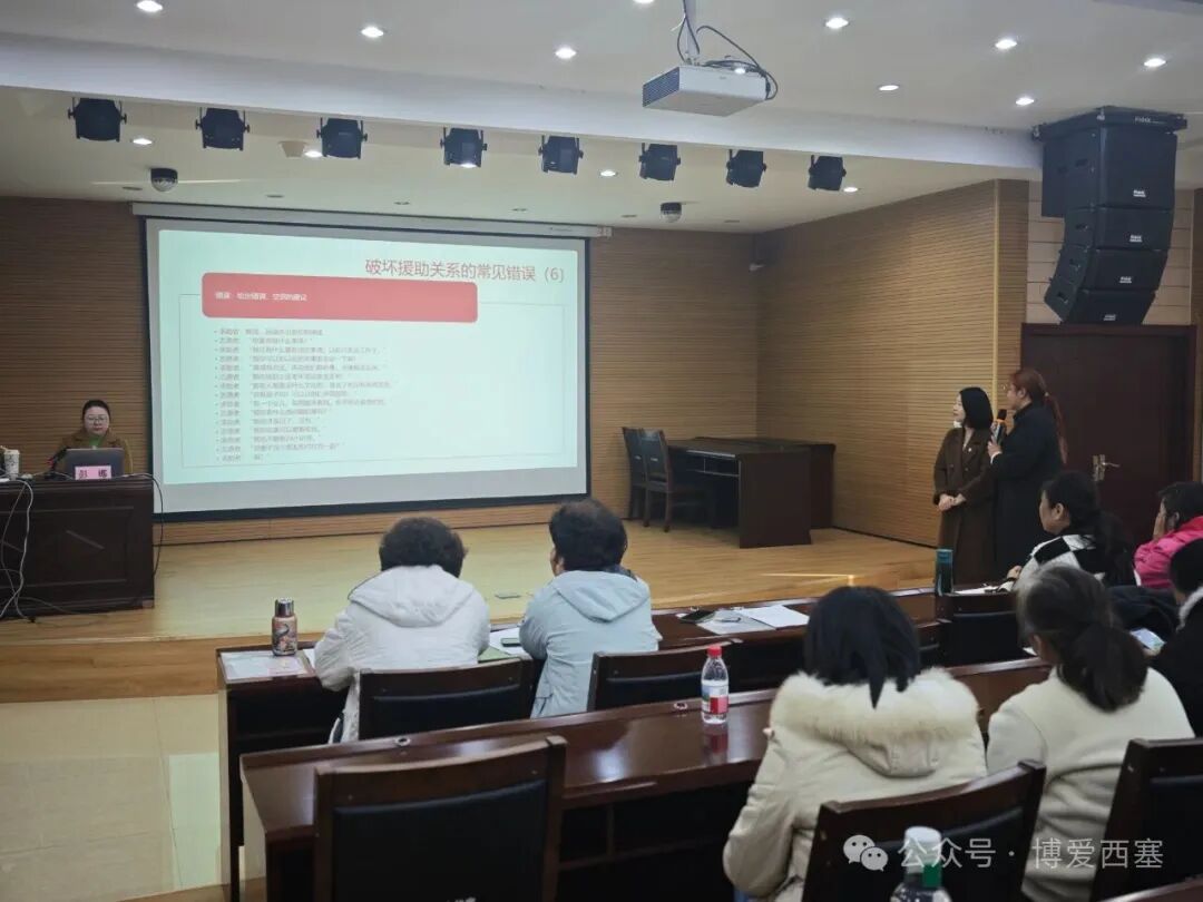 在《心理援助技能辅导》课程中,彭娜老师系统讲授了心理援助的专业流程与核心技能。她从援助关系的建立入手,强调心理援助首先要明确援助目标,通过专注倾听、细致记录等专业细节建立信任基础。在讲解倾听技术时,彭老师深入剖析了专业性倾听的三大功能:理解对方真实意图、感知情绪变化、捕捉潜在诉求,并通过对比例证指出"判断先于倾听""选择性倾听"等消极倾听模式的危害。课程中特别设置了错误示范环节,通过一段典型的失败对话——志愿者接连给出空洞建议,而求助者在每个建议后都设置障碍,生动展现了脱离共情基础的建议为何无效。这些实用性强的内容,为来自教育、医疗、社区等不同领域的学员提供了建立有效助人关系的具体方法,让大家深刻认识到:真正的心理援助始于专业的倾听与理解,而非急于给出解决方案。