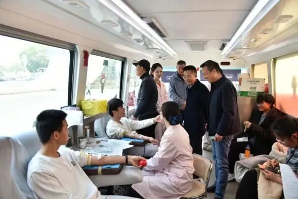 湖北理工学院党委常委、副校长刘修海、市红十字会党组书记、常务副会长王永久到现场指导并亲切慰问参加献血活动的大学生。