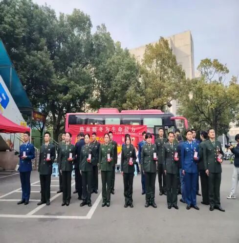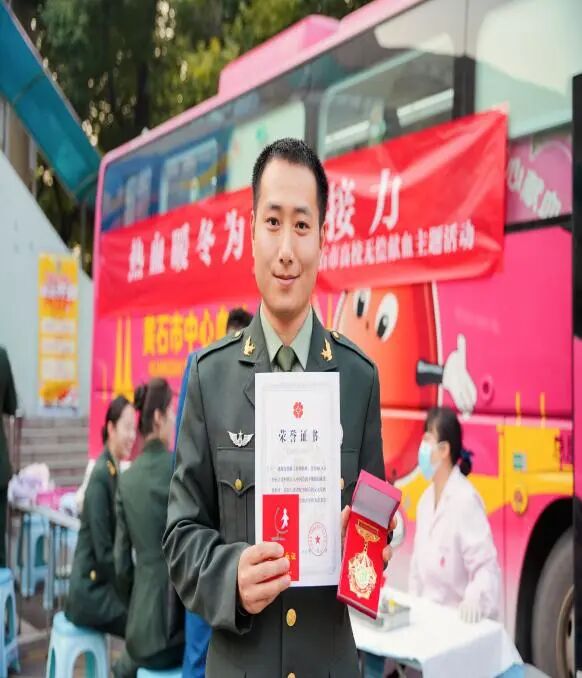 湖北师范大学党委副书记、副校长余涛、市红十字会党组书记、常务副会长王永久到现场指导并颁发“退役军人献血纪念章”。