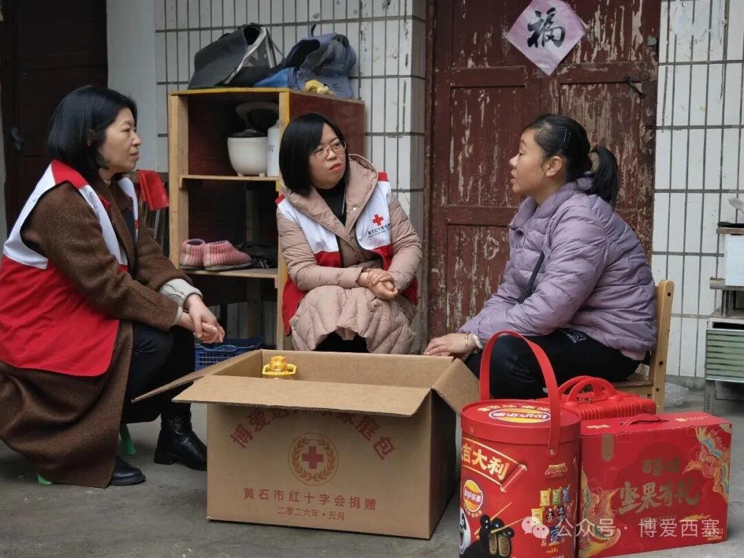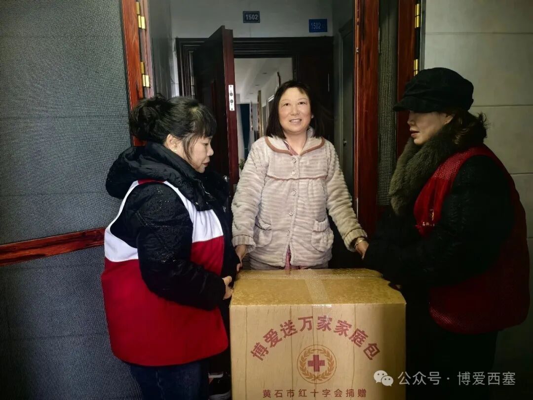 博爱西塞,寒冬送暖。近日,在省、市红十字会的支持下,西塞山区红十字系统开展2026年度“红十字博爱送万家”活动。本次活动重点走访慰问因灾因病生活困难群体、“三献”捐献者家庭等特殊人群,通过精准走访、贴心慰问,98份精心准备的“博爱家庭包”,包含米、油、节日礼包等生活必需品,承载着党和政府的牵挂与社会各界的爱心,实实在在地送达群众手中。