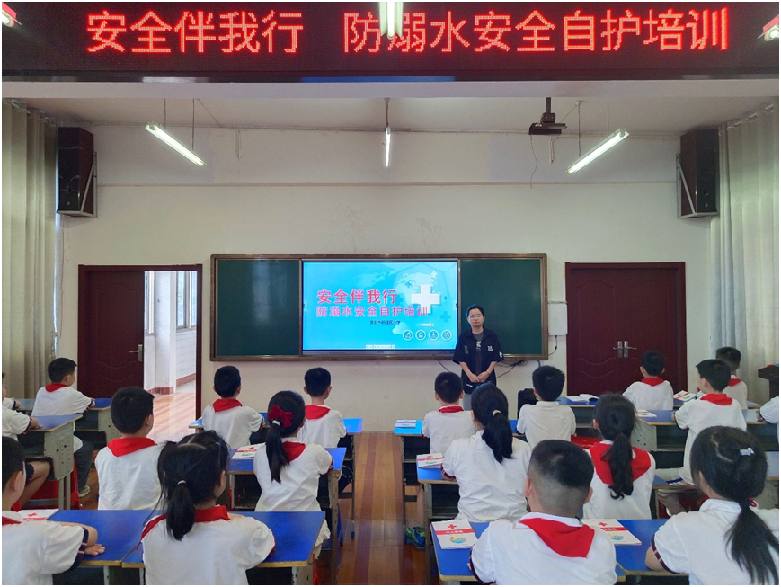 为切实做好防溺水安全工作,提高小学生自我保护能力,学校卫生保健教师谈瑶利用多媒体课件、图片、故事、儿歌、情景表演等多种形式,让学生了解易发生溺水事故的危险地带,分析如何避免溺水,以及溺水给家庭带来的伤害和痛苦。
