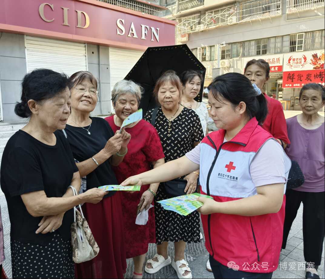 当前黄石正值夏季高温时节,多雨天气将进一步增加蚊虫孳生风险,基孔肯雅热等蚊媒传染病防控压力陡增。为切实保障辖区居民身体健康,8 月 22 日上午,西塞山区上窑社区红十字会志愿者走进上窑记忆街头,开展防蚊灭蚊宣传活动。