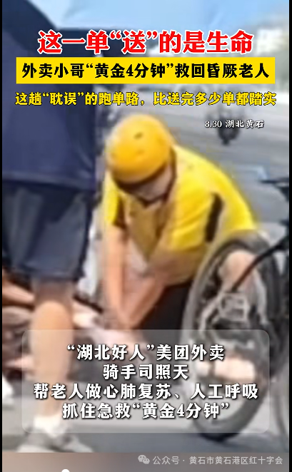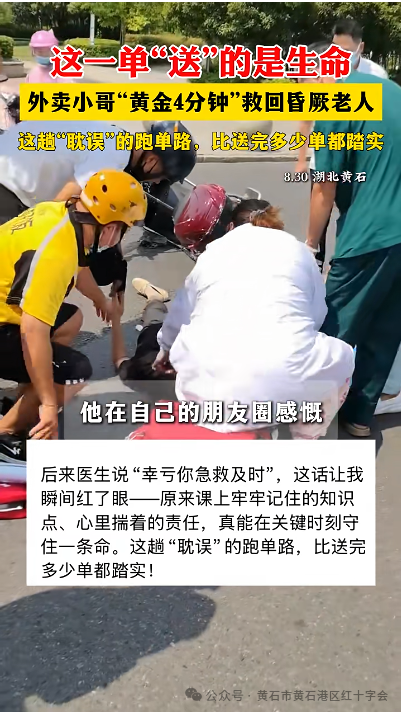 “人人学急救,急救为人人”这一句应急救护知识技能普及的口号在外卖小哥司照天的身上得到了诠释。