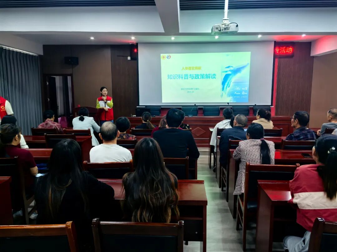 上午九点,火车站社区会议室座无虚席。县红十字会专业讲师以图文并茂的PPT和感人至深的案例,为居民系统讲解了器官捐献的政策法规、登记流程、权益保障等核心知识。 “器官捐献并非生命的终结,而是以另一种方式延续爱与希望。”讲师结合捐献者挽救3名患者生命的真实故事,用质朴的语言诠释了生命接力的深刻内涵。针对居民普遍关心的“登记后能否反悔”“捐献是否影响丧葬”等疑虑,讲师依据《人体器官捐献和移植条例》进行了专业解读,明确告知“捐献意愿可随时变更或撤销”,并详细说明了捐献者纪念缅怀、家属优先移植权等权益保障,彻底打消了大家的顾虑。在互动环节,居民踊跃提问:“年过六十还能捐献吗?”“登记需要哪些手续?”红十字会讲师与志愿者一一耐心解答,现场气氛温馨而热烈。