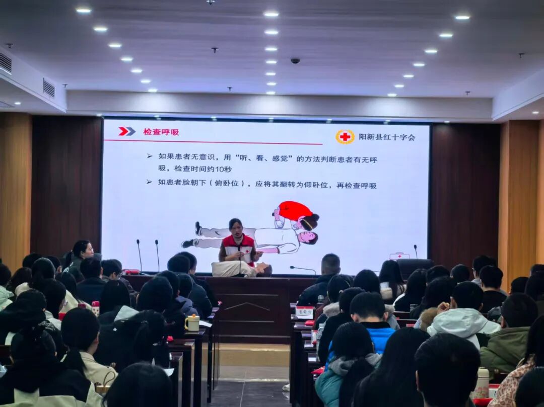 11月19日,县红十字会走进党校课堂,为118名阳新县2025年新录用公务员开展了一场生动而实用的应急救护培训。本次培训聚焦心肺复苏技能,旨在提升青年公务员的应急救护能力,强化其在公共服务中的责任与担当,取得了良好的教学效果与社会反响。