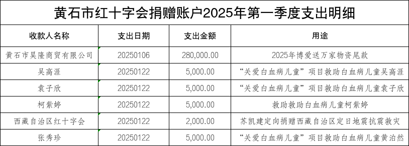 黄石市红十字会捐赠账户2025年第一季度支出明细